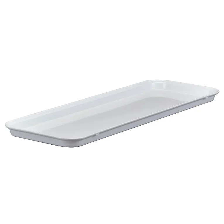 Market Trays are designed to attractively merchandise salads, desserts, hors d’oeuvres, and pastries. Made of high impact resistant fiberglass with aluminum reinforced rims, Market Trays are ideal for bakeries, supermarkets, and delis. Available in five eye-catching colors, these trays resist odors and will not oxidize like aluminum trays; every color is NSF listed except yellow, which is listed for non-direct food contact only.