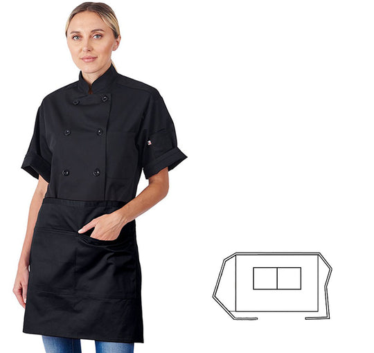 Hi-Lite Uniform collaborates with industry experts to design 1/2 Bistro Apron with Two Center Pockets that prioritize both safety and comfort, our garments meet the highest standards in material quality and design for lasting performance. We use colorfast fabrics (65% polyester, 35% cotton, 7.5 oz. twill) that resist fading and wear, and bar-tack stress points for exceptional durability, making Hi-Lite Uniform a trusted choice for both professional chefs and cooking enthusiasts in restaurants.