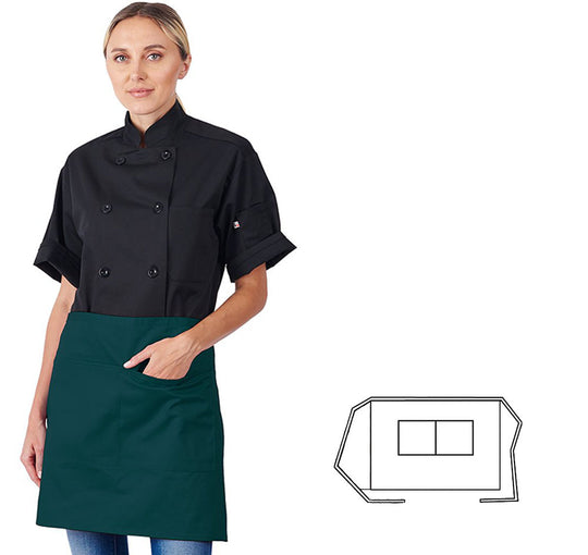 Hi-Lite Uniform collaborates with industry experts to design 1/2 Bistro Apron with Two Center Pockets that prioritize both safety and comfort, our garments meet the highest standards in material quality and design for lasting performance. We use colorfast fabrics (65% polyester, 35% cotton, 7.5 oz. twill) that resist fading and wear, and bar-tack stress points for exceptional durability, making Hi-Lite Uniform a trusted choice for both professional chefs and cooking enthusiasts in restaurants.