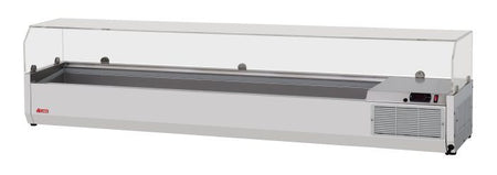 E-Line Countertop Salad Table, with clear hood, 70-7/8″L, side mounted self-contained refrigeration, accommodates (16) GN 1/6 size or (8) GN 1/3 size 6″ deep condiment pans (pans not included), digital temperature display on front panel, static cooling system, R290 Hydrocarbon refrigerant, stainless steel interior &, exterior, 1/6 HP, 115V/60/1, 2 Amps, NEMA 5-15P, cETLus, ETL-Sanitation (contact sales for lead time)