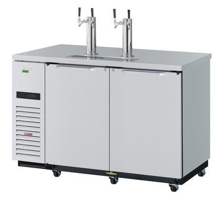 Super Deluxe Beer Dispenser, 58-3/4″W x 27-1/4″D x 37-1/8″H, self-cleaning condenser equipped, (2) swing doors with locks, stainless steel countertop &, exterior, stainless steel inside walls &, floor, galvanized steel interior top, (2) 1/2 barrel capacity, (2) 3″ dia. stainless steel insulated beer columns with double faucet, door locks, recessed handles, side mount, front air intake, R600a Hydrocarbon refrigerant, 1/5 HP, 115V/60/1, 1.9 Amps, cord with NEMA 5-15P, cETLus, ETL-Sanitation, ENERGY STAR®
