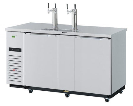 Super Deluxe Beer Dispenser, 69″W x 27-1/4″D x 37-1/8″H, self-cleaning condenser equipped, (2) swing doors with locks, stainless steel countertop &, exterior, stainless steel inside walls &, floor, galvanized steel interior top, (3) 1/2 barrel capacity, (2) 3″ dia. stainless steel insulated beer columns with double faucet, door locks, recessed handles, side mount, front air intake, R-600a Hydrocarbon refrigerant, 1/3 HP, 115V/60/1, 2.5 Amps, cord with NEMA 5-15P, ETL-Sanitation, cETLus, ENERGY STAR®