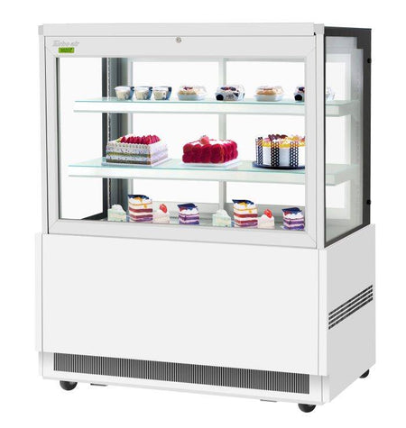 Refrigerated Bakery Display Case, 47-1/4″W x 27-1/2″D x 51-7/8″H, 17.2 cu. ft. capacity, self-contained refrigeration with self-cleaning condenser, front glass opening, tempered glass side pannels, sliding rear doors, digital temperature controller, (2) adjustable tempered glass shelves with AL front &, back edges, LED interior lighting, specify exterior color, 3″ swivel casters (rear locking), R290 Hydrocarbon refrigerant, 3/4 HP, 115V/60/1, 8.2 Amps, cord with NEMA 5-15P, cETLus, ETL-Sanitation