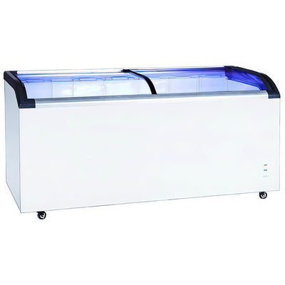 Display your frozen goods while maintaining easy access and efficient storage with the Black Diamond Sliding Glass Door Chest Freezer. The unit's 12.5 cubic feet storage capacity is ideal for storing and displaying ice cream, frozen meals and other frozen foods. Tempered sliding glass doors allow customers to see the contents without opening the freezer, which helps maintain internal temperatures and improves energy efficiency. The exterior is constructed of steel with a durable white powder coating, while the interior is white PCM aluminum. This commercial chest freezer includes four plastic-coated wire baskets to help keep your items organized and properly merchandised. The LED interior lighting enhances the visibility of your products and makes them more attractive to customers. The unit has a manual temperature controller with 0-7 settings and light-up indicators. Thick wall insulation helps to maintain a temperature range of -4° to 10°F, making it suitable for preserving various frozen products. This commercial glass top display freezer features manual defrosting, power and operating light indicators that let you know when the unit is on and running, and a drain plug located on the bottom of the cabinet that allows for easy cleaning. This unit uses environmentally-friendly R290 refrigerant. The display freezer is equipped with four built-in casters for sliding in and out of spaces for easier cleaning. The Black Diamond Sliding Glass Door Chest Freezer offers an excellent solution for managing your frozen food inventory, making it perfect for commercial establishments such as grocery stores, convenience stores and markets. Covered by the Black Diamond One-Year Limited Warranty on Parts and Labor.