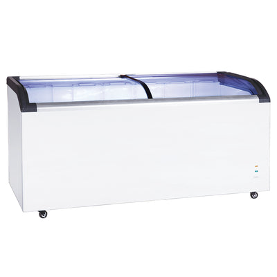 Display your frozen goods while maintaining easy access and efficient storage with the Black Diamond Sliding Glass Door Chest Freezer. The unit's 15.7 cubic feet storage capacity is ideal for storing and displaying ice cream, frozen meals and other frozen foods. Tempered sliding glass doors allow customers to see the contents without opening the freezer, which helps maintain internal temperatures and improves energy efficiency. The exterior is constructed of steel with a durable white powder coating, while the interior is white PCM aluminum. This commercial chest freezer includes five plastic-coated wire baskets to help keep your items organized and properly merchandised. The LED interior lighting enhances the visibility of your products and makes them more attractive to customers. The unit has a manual temperature controller with 0-7 settings and light-up indicators. Thick wall insulation helps to maintain a temperature range of -4° to 10°F, making it suitable for preserving various frozen products. This commercial glass top display freezer features manual defrosting, power and operating light indicators that let you know when the unit is on and running, and a drain plug located on the bottom of the cabinet that allows for easy cleaning. This unit uses environmentally-friendly R290 refrigerant. The display freezer is equipped with six built-in casters for sliding in and out of spaces for easier cleaning. The Black Diamond Sliding Glass Door Chest Freezer offers an excellent solution for managing your frozen food inventory, making it perfect for commercial establishments such as grocery stores, convenience stores and markets. Covered by the Black Diamond One-Year Limited Warranty on Parts and Labor.