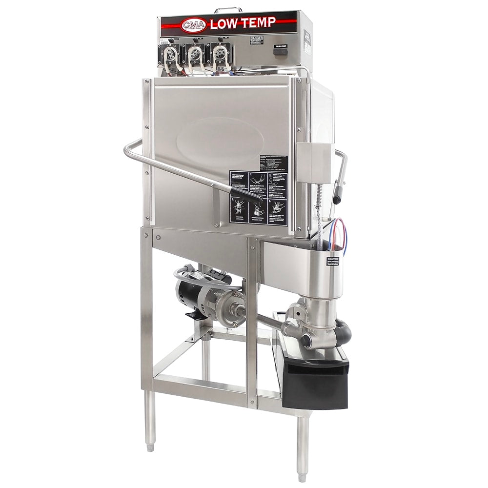 Energy Mizer® Dishwasher, door type, 25-3/4″ W, low temp. chemical sanitizing with priming switches, top mounted controls, auto ″start/stop″, corner design, (40) racks/hour, delimer switch, Poly Pro™ scrap accumulator, stainless steel construction, includes (1) open & (1) peg rack, 1 HP wash pump, NSF, cULus, 115v/60/1ph
