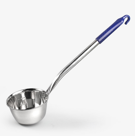 Convenient to use stainless steel ladle has measurement markings on the inside of the ladle bowl for easy measuring. Long handle for convenient dipping in deep pots.