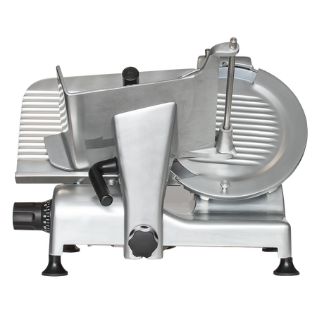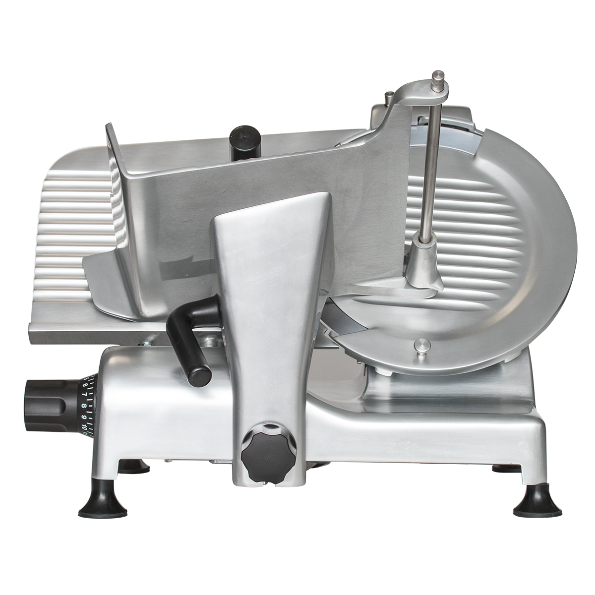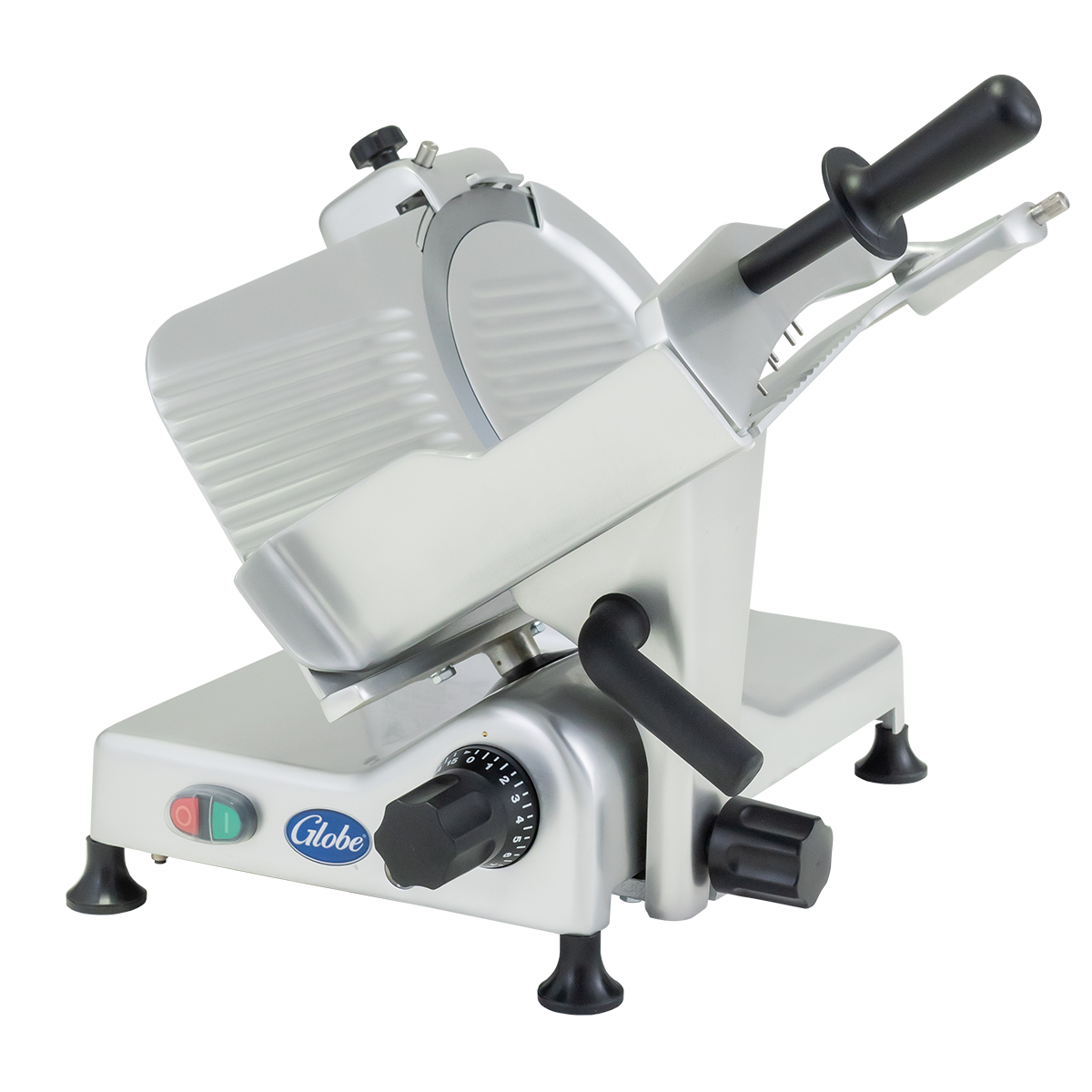 Globe's G12 manual slicer is perfect for mid-volume operations. The enhanced features of the G-series generate optimal slicing quality for meat and cheese. The extended rod, end weight and chute can accommodate product up to 10.5" in length and the pyramid-shaped end weight teeth improve product hold during slicing. No other medium-duty slicers offer a premium 2-year warranty.
