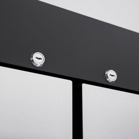 M3 Freezer, reach-in, Three-section, 65.6 cu. ft., 77-3/4″W x 30-3/4″D x 78″H, digital thermometer, self-diagnostic monitoring system, hot gas condensate system, smart fuzzy defrost, automatic fan motor delays, door pressure release, LED interior lighting, self-cleaning condenser device, (6) half hinged solid doors with recessed handle &, locks, (9) PE coated wire shelves, stainless steel front &, sides (galvanized steel top, bottom &, back), aluminum interior with stainless steel floor, top mount self-contained compressor, R290 Hydrocarbon refrigerant, 3/4 HP, 115V/60/1, 7.9 Amps, NEMA 5-15P, cETLus, ETL-Sanitation