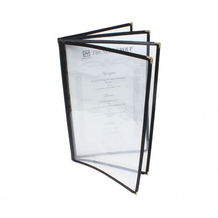 4 Page Book Fold Menu Cover, Long, 8-1/2" x 14", Black Color Trim, Faux Leather, PolyVinyl chloride & Polyurethane
