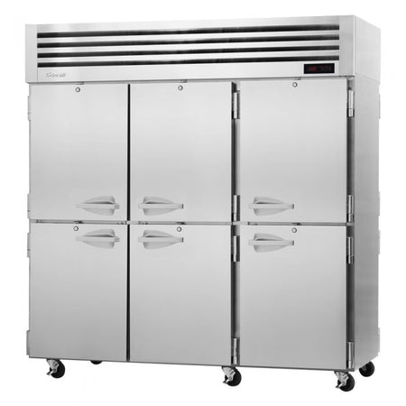 PRO Series Pass-thru Heated Cabinet, Three-section, stainless steel interior and 22 gauge exterior, (12) self-closing half solid doors with stay open feature, Lifetime guaranteed heavy duty hinges and handles, Digital temperature control, Led interior lighting, (9) stainless steel shelves, 5″ casters, 3000W, NEMA L14-20P, 208V/115/60/1, ETLus, ETL, MADE IN USA