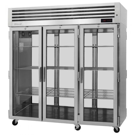 PRO Series Pass-thru Heated Cabinet, Three-section, stainless steel interior and 22 gauge exterior, (6) self-closing full length glass doors with stay open feature, Lifetime guaranteed heavy duty hinges and handles, Digital temperature control, Led interior lighting, (9) stainless steel shelves, 5″ casters, 3000W, NEMA L14-20P, 208V/115/60/1, ETLus, ETL, MADE IN USA