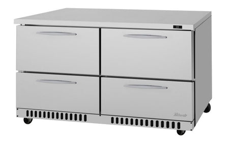 PRO Series Undercounter Refrigerator, Front Breathing airflow, two-section, 14.8 cu. ft., 60-1/4″W x 30″D x 30-1/2″H, (4) drawers, stainless steel interior & exterior (galvanized steel bottom), self-cleaning condenser, R290 Hydrocarbon refrigerant, 1/6 HP, 115v/60/1-ph, 8.9 amps, NEMA 5-15P, cETLus, ETL-Sanitation, Made in USA (contact sales for lead time)