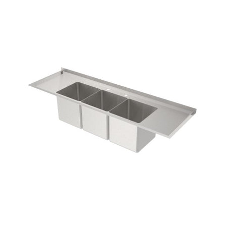 SH12163DDN - 3 Comp Drop-In Sink, 12” x 16” x 12”, w/ 2 Drainboard, 1-1/2” Rear Upturned, 18 ga.