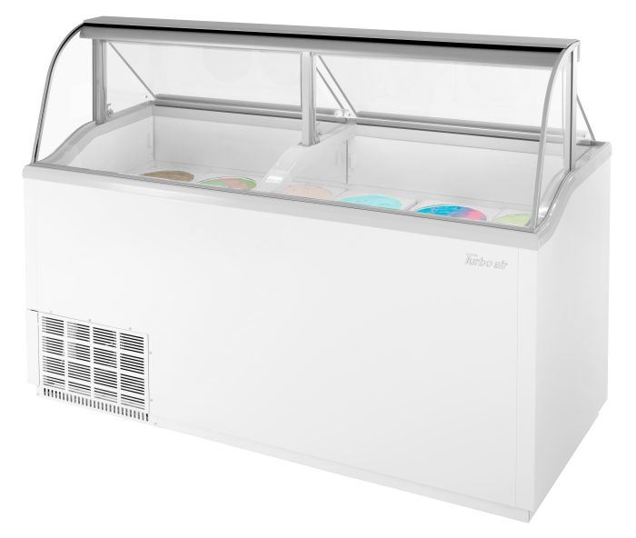 Ice Cream Dipping Cabinet, 68″L x 26-1/8″D x 50-7/8″H, (12) 3 gallon tub capacity, (8) storage, (2) standard ABS night covers, (3) stainless steel shelves, LED lighting for interior canopy, manual defrost, PE coated removable magnetic frost shields, white exterior color, R290 Hydrocarbon refrigerant, 1 HP, 115V/60/1, 6.7 Amps, NEMA 5-15P, cETLus, ETL-Sanitation