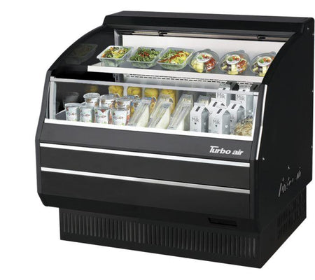 Horizontal Open Display Merchandiser, low-profile, 7.4 cu. ft. capacity, 39-1/8″ W x 33-1/2″D x 45-7/8″H, self-contained refrigeration, self-cleaning condenser, tempered glass front shield, solid side panels, (1) adjustable shelf, LED interior lighting under each shelf, specify interior, R290 Hydrocarbon refrigerant, 3/4 HP, 115V/60/1, 7.3 Amps, cord with NEMA 5-15P, cETLus, ETL-Sanitation