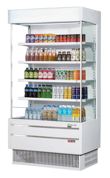 Vertical Air Curtain Open Display Merchandiser, full-height, 16.1 cu. ft. capacity, 39-7/8″W x 25-3/4″D x 80-1/4″H, self-contained refrigeration with self-cleaning condenser, LED interior lighting, (4) adjustable shelves, night curtain, front air intake &, rear air discharge, white interior, specify exterior color, R290 Hydrocarbon refrigerant, (2) 3/4 HP, 115V/60/1, 15.5 Amps, cord with NEMA 5-20P, cETLus, ETL-Sanitation (contact factory for lead time)