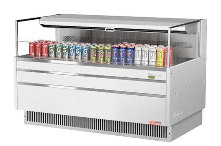 Horizontal Open Display Merchandiser, low-profile, 8.0 cu. ft. capacity, 58-3/4″W x 33″D x 37-3/4″H, self-contained refrigeration with self-cleaning condenser, tempered glass front shield &, side panels, stainless steel interior, deck only, digital electronic thermostat with defrost control, solar digital thermometer, LED interior lighting, specify exterior color, includes night cover, front air intake &, rear air discharge, R290 Hydrocarbon refrigerant, (2) 3/4 HP, 115V/60/1, 15 Amps, cord with NEMA 5-20P, cETLus, ETL-Sanitation (Contact sales for lead time)