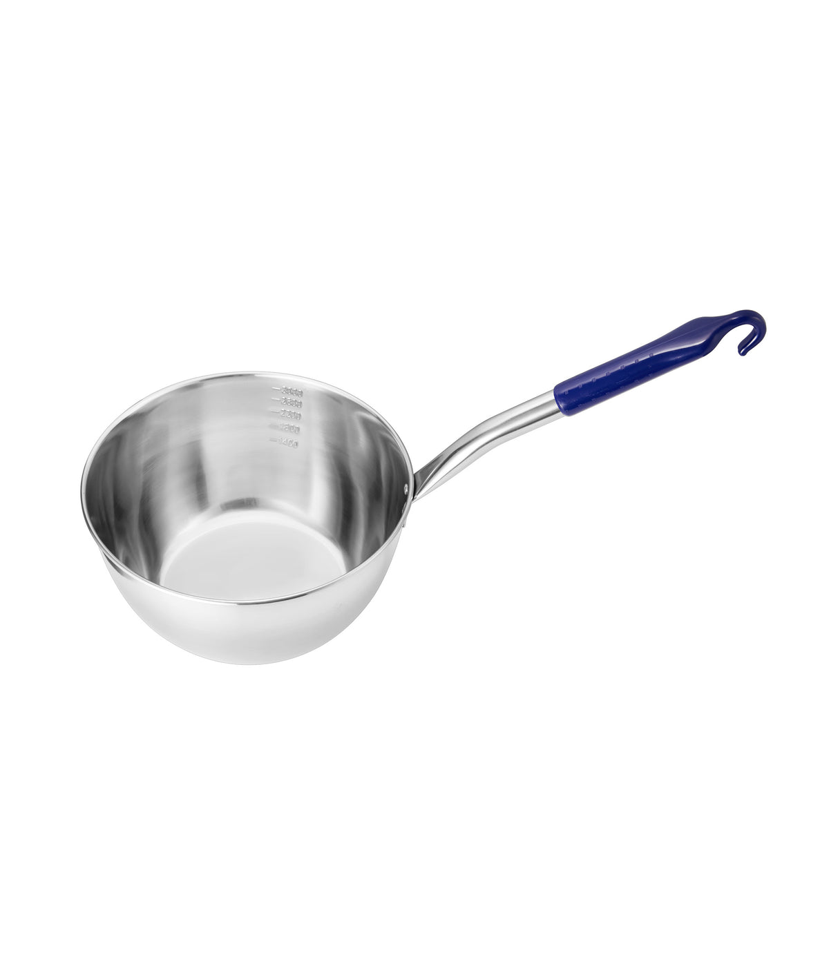 Convenient to use stainless steel ladle has measurement markings on the inside of the ladle bowl for easy measuring. Long handle for convenient dipping in deep pots.