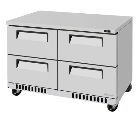 Super Deluxe Series Undercounter Refrigerator, Front Breathing airflow, two-section, 11.1 cu. ft., 48-1/4″W x 30″D x 30″H, (4) drawers, stainless steel interior & exterior (galvanized steel back & bottom), self-cleaning condenser equipped, R290 Hydrocarbon refrigerant, 1/5 HP, 115v/60/1-ph, 6.5 amps, NEMA 5-15P, cETLus, ETL-Sanitation (contact sales for lead time)